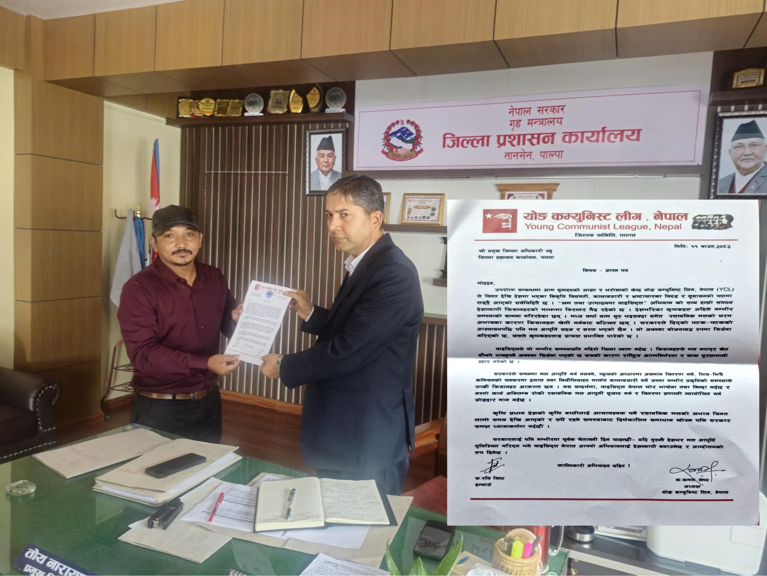 पाल्पा-युवा कम्युनिस्ट लिग, नेपाल (वाइसियल) जिल्ला समिति, पाल्पाले देशमा रासायनिक मलको अभाव, कालाबजारी र भ्रष्टाचारका विरुद्ध सशक्त आन्दोलनको चेतावनी दिएको छ।