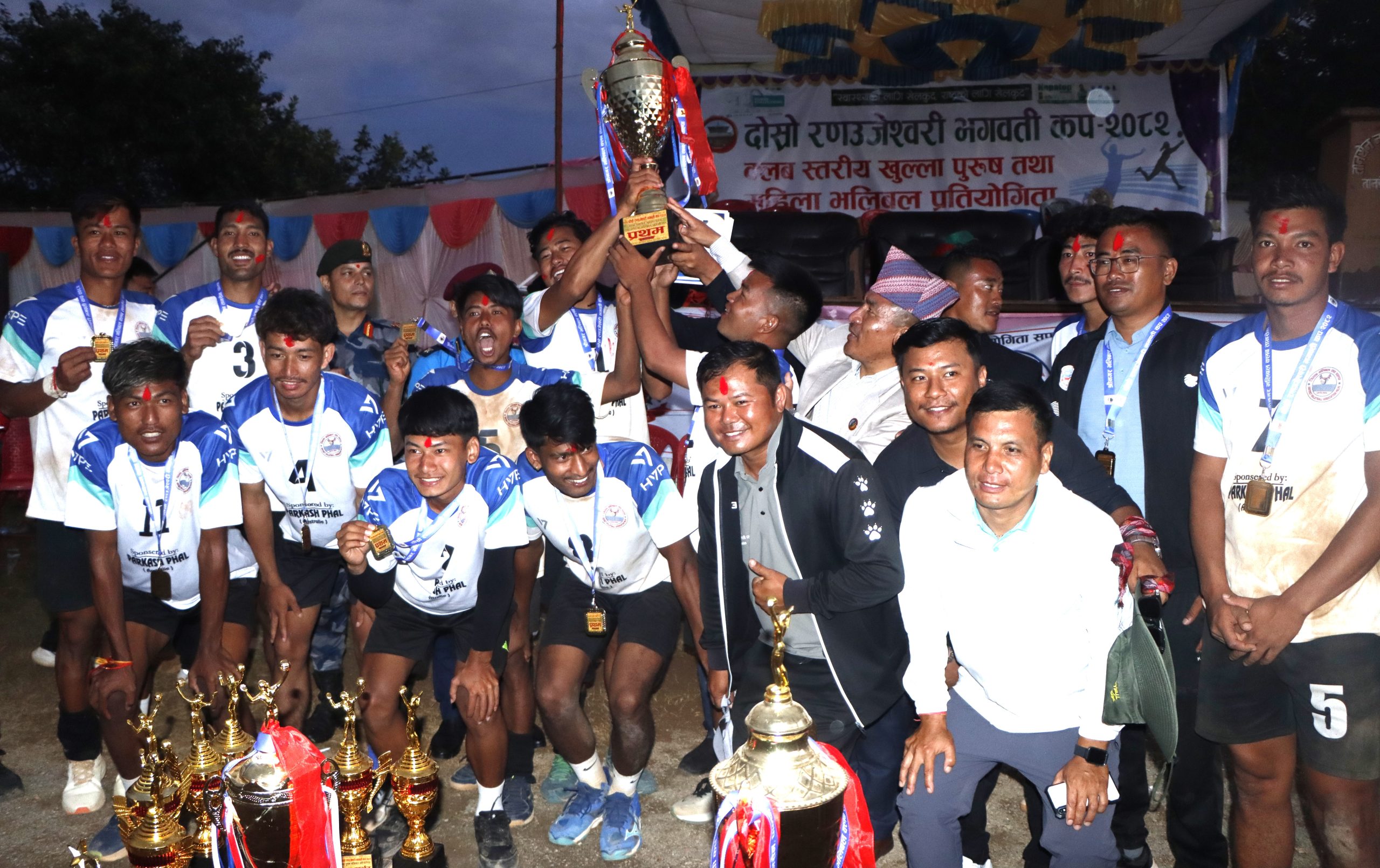तानसेन। दोस्रो रणउजिरेश्वरी भगवती कप प्रतियोगिताको उपाधि पाल्पा जिल्ला भलिबल संघले चुमेको छ । श्रीनगर भलिबल क्लबको आयोजनामा गत साउन २९ गतेदेखि सुरु भएको प्रतियोगिताको फाइनल खेलमा फ्रेन्स फरइभर टोकियो जापान भलिबल क्लबलाई ३–२ सेटले पराजित गरेको हो ।